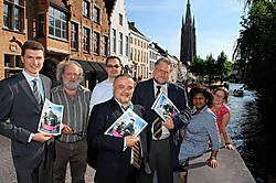 De komende weken zijn er nog premières gepland van de film In Bruges. Vanaf 16mei zal de film te zien zijn in Oostenrijk en vanaf 2juli in Frankrijk. ‘Ik ben gelukkig dat de horeca ook inspeelt op deze film. Zo bieden drie restaurants een In Bruges-menu aan en zijn er In Bruges-verblijfsarrangementen in twaalf verschillende Brugse hotels. Wie bijvoorbeeld het Martin’s Brugge Hotel aan de Oude Burg binnenloopt, wordt onmiddellijk geconfronteerd met een groot pistool van chocolade. Ik kan dit enkel en alleen toejuichen want straks zal een groot deel van de wereld de film gezien hebben. We kregen de voorbije weken al lovende citaten over de film in de internationale pers, onder meer in de New York Post, Denver Post en Washington Examiner’, besluit de Brugse toerismeschepen Jean-Marie Bogaert (N-VA). (rso)
