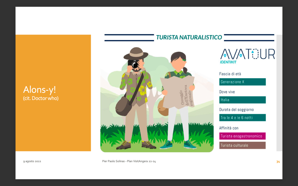 Gli avatar o personas sono dei mezzi piuttosto comuni atti a identificare i propri target di riferimento e se ne possono trovare di tantissime declinazioni diverse. Quelli che porto come esempio identificano quelle nicchie elaborate dall’osservatorio sull’economia del turismo delle camere di commercio